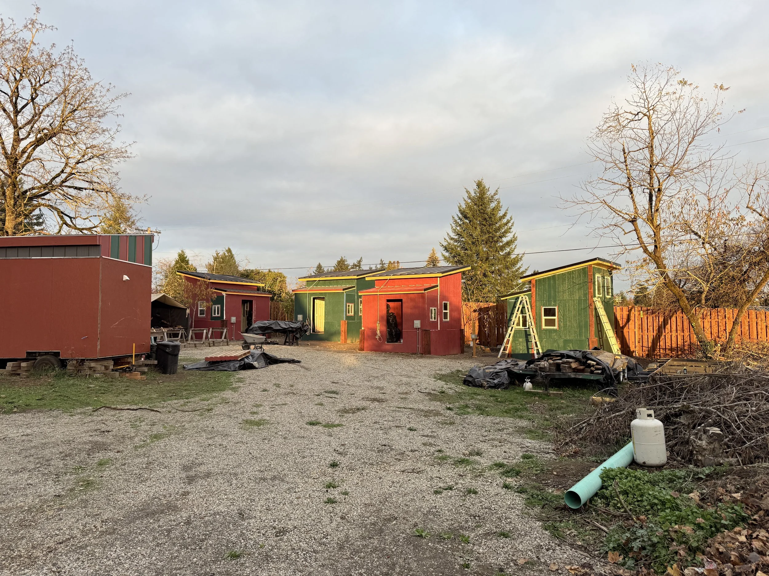 Cascadia Cluster’s current home is off of Stark St. in SE Portland. This former orchard is now being utilized for the construction of tiny homes by the same people that will be moving into them upon completion.